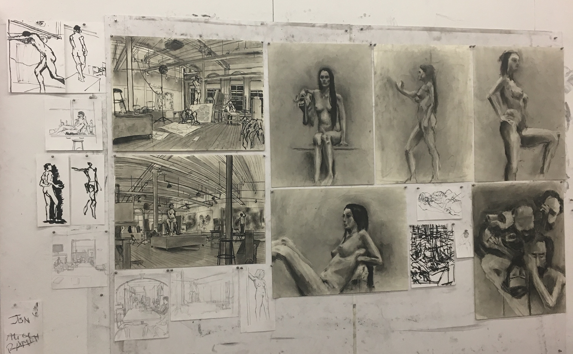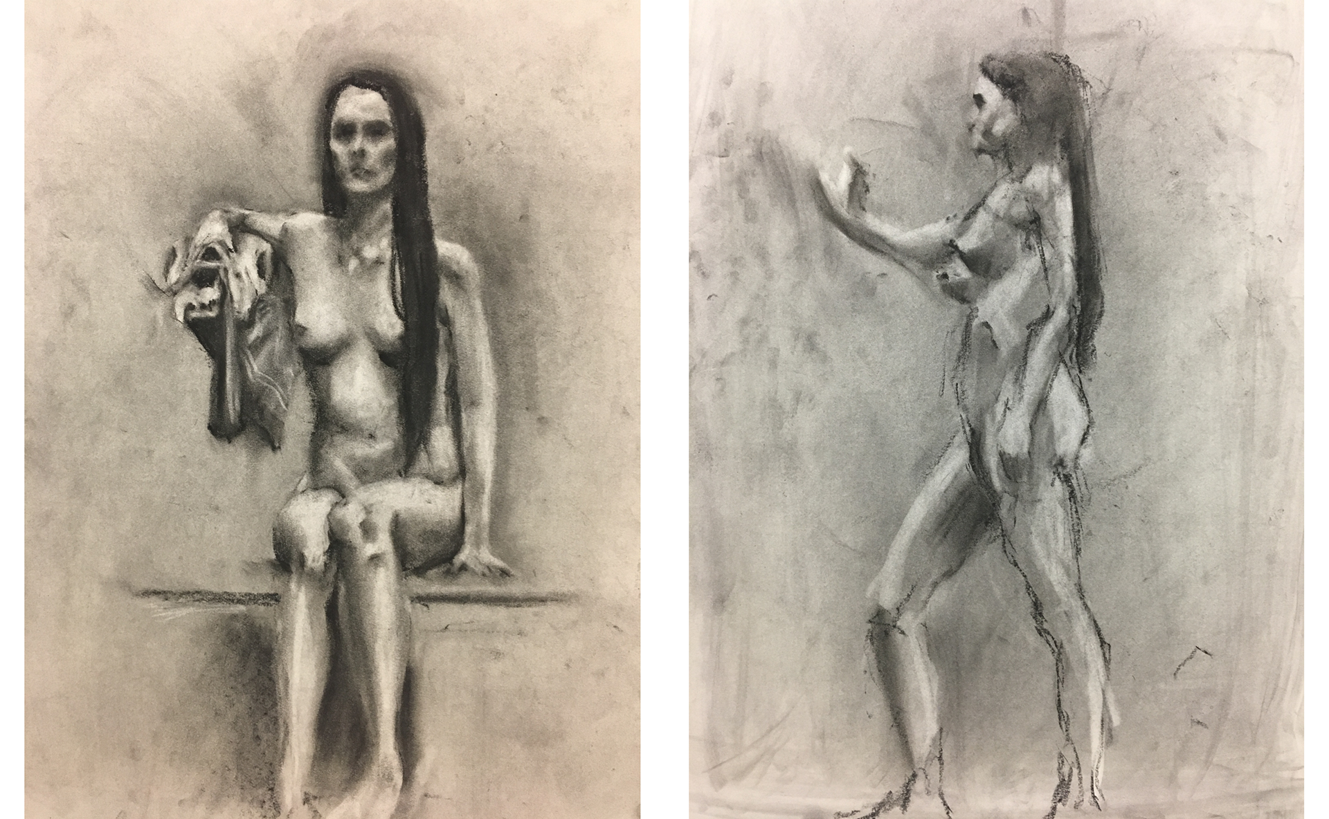 Observational charcoal exercises for Animation Marathon 2018 at Rhode Island School of Design.