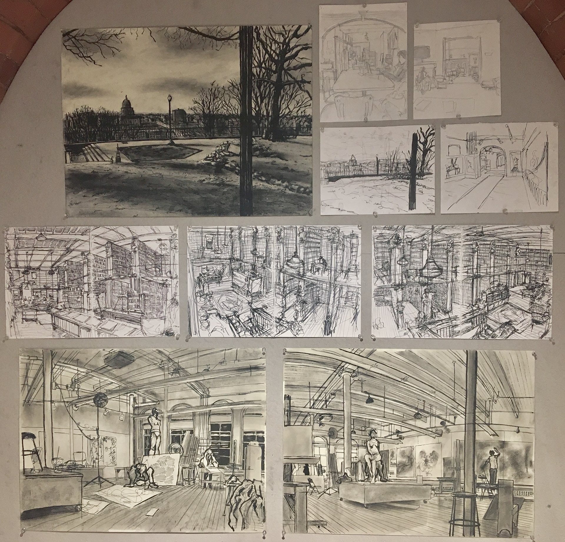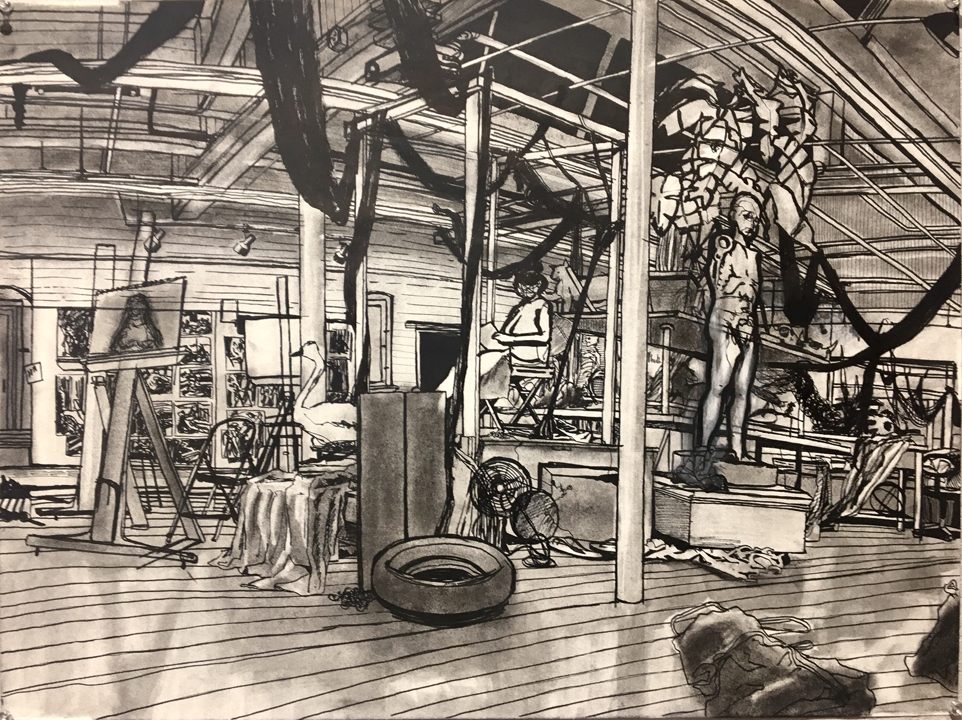 Observational drawings done with ink and charcoal done for Drawing Marathon 2018. Taught by Gwen Strahle at Rhode Island School of Design.